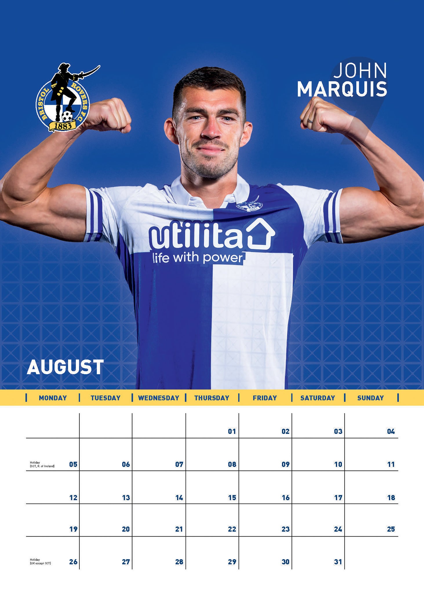 Bristol Rovers FC Official 2024 A3 Pirates Football Wall Calendar
